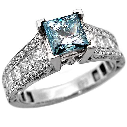 2.68ct Princess cut Blue Diamond Engagement Ring 18k White Gold Review