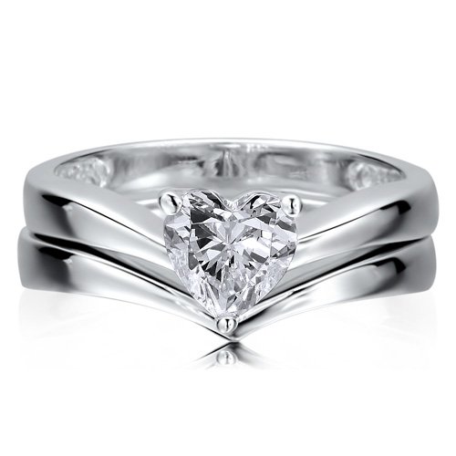 Sterling Silver 925 Heart Cut Cubic Zirconia CZ Solitaire 2pc Ring Set - Women's Engagement Wedding Ring Set Review